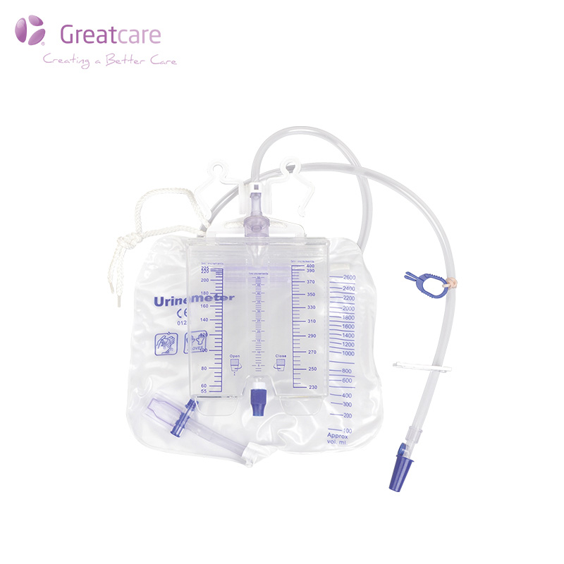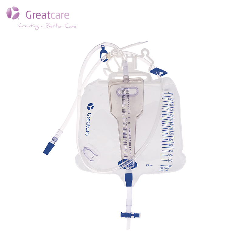 Greatcare to profesjonalna fabryka worków do drenażu moczu w Chinach, która została zatwierdzona przez CE i ISO13485. Worek drenażowy do moczu został starannie zaprojektowany i wyprodukowany, aby zapewnić pacjentom wysoką jakość leczenia i łatwość użycia dla pracowników służby zdrowia. Wykonany jest z PVC w jakości medycznej, składa się z korpusu worka, rurki wlotowej, rurki wylotowej i podwójnego wieszaka, niepotrzebnego portu do pobierania próbek i miernika moczu.